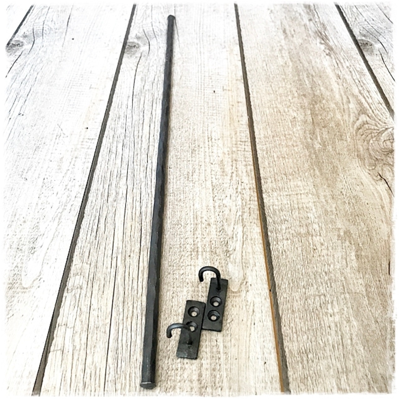 当店で人気のアイアンハンマー仕上げのレールと受金具をセットにしたものです。